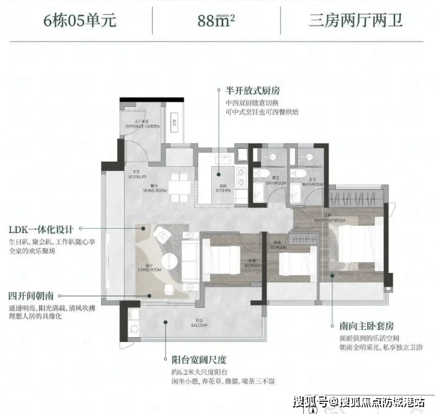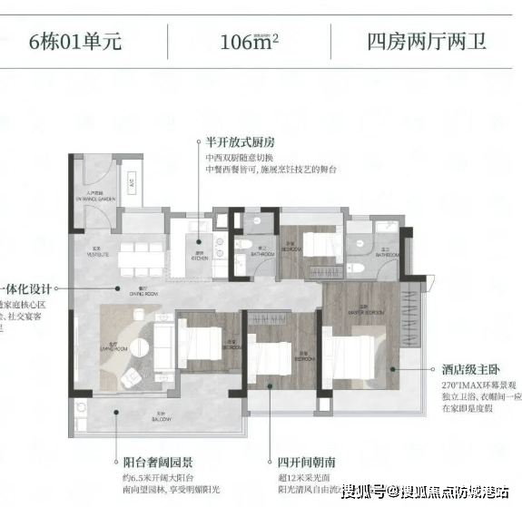 :从力改善户型。双卫设想完全处理了迟早高峰的洗漱拥堵问题,从卧套房设想带来更强的私密性和舒服度。该面积段是市场上最受欢送、流动性最强的产物之一。